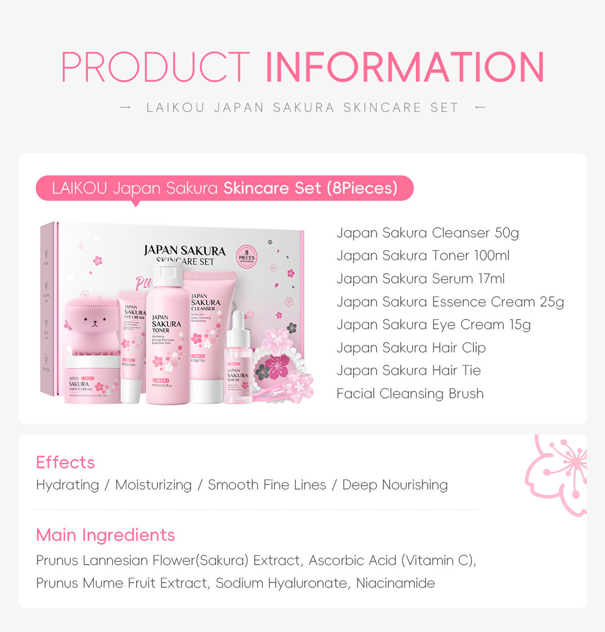 New Arrival Laikou Cherry Blossom 8-Piece Set Birthday Gift Facial Skin Care Gift Set Laikou Hydrating Moisturizing Genuine Article