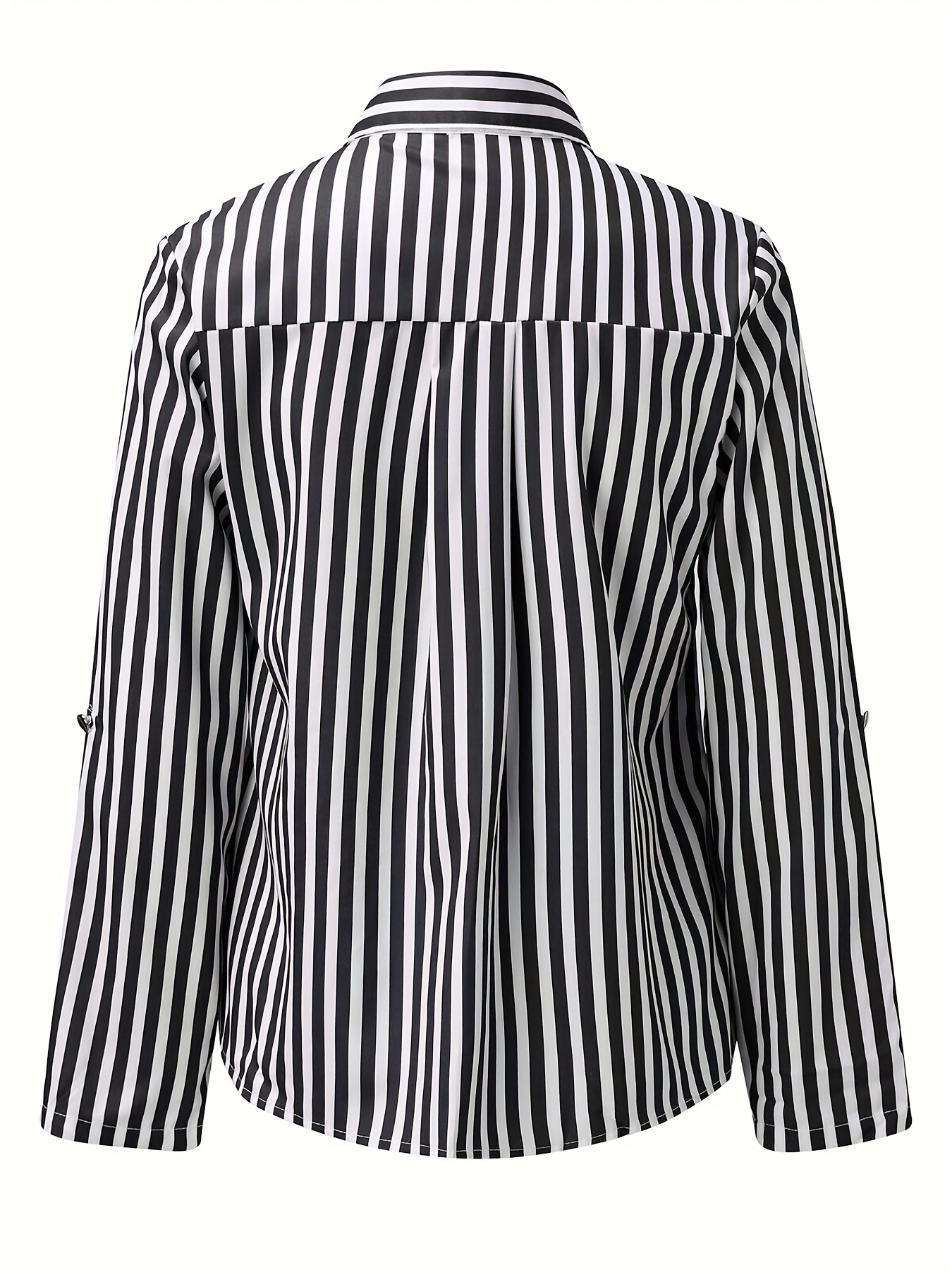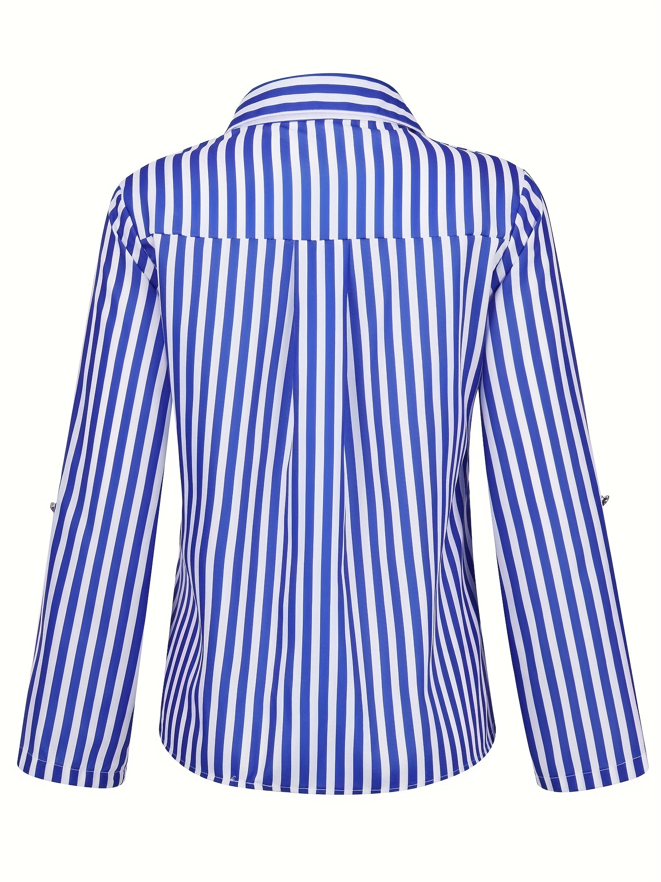 Women's Elegant Striped Shirt with Lapel Collar - Versatile Business Casual, Easy-Care, for Spring/Fall